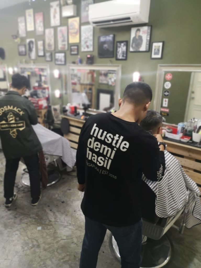 Gosmack barbershop was originally a clothing brand which produces apparels. Known for their slogan “Hustle Demi Hasil”, a local Malay slang which translates “Hustling For Dollars”. That best describes these fellas because we see them working really hard. There was one time when i wanted a haircut badly for my wedding day and Mirzi came back on his off shift to do it even though he has a flight to catch in a few hours. Never thank him enough.