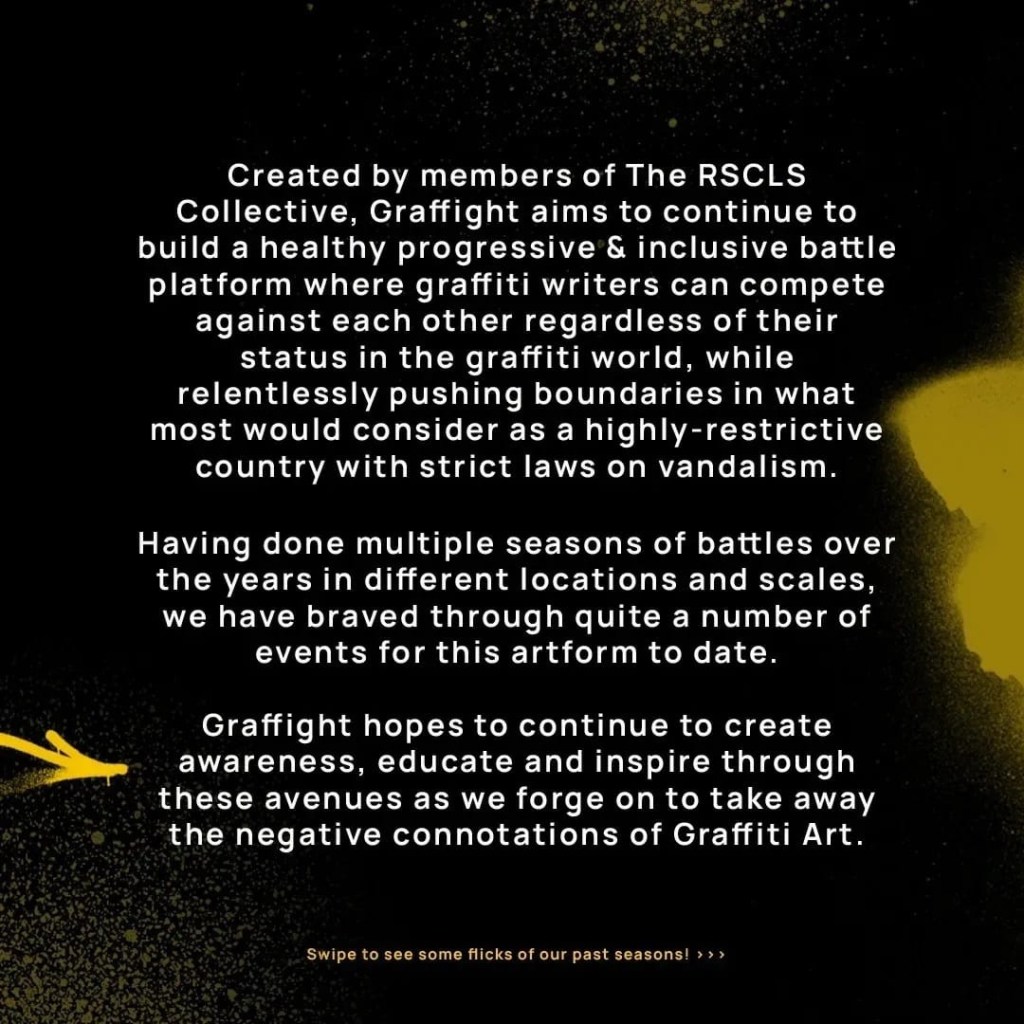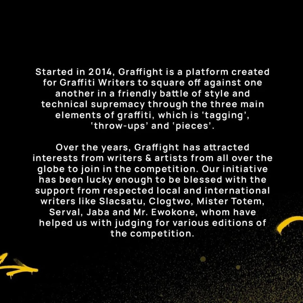 Witness as 8 writers go head to head in a aerosol battle of technical style and supremacy! Only one will emerge as champion of Graffight 2022!